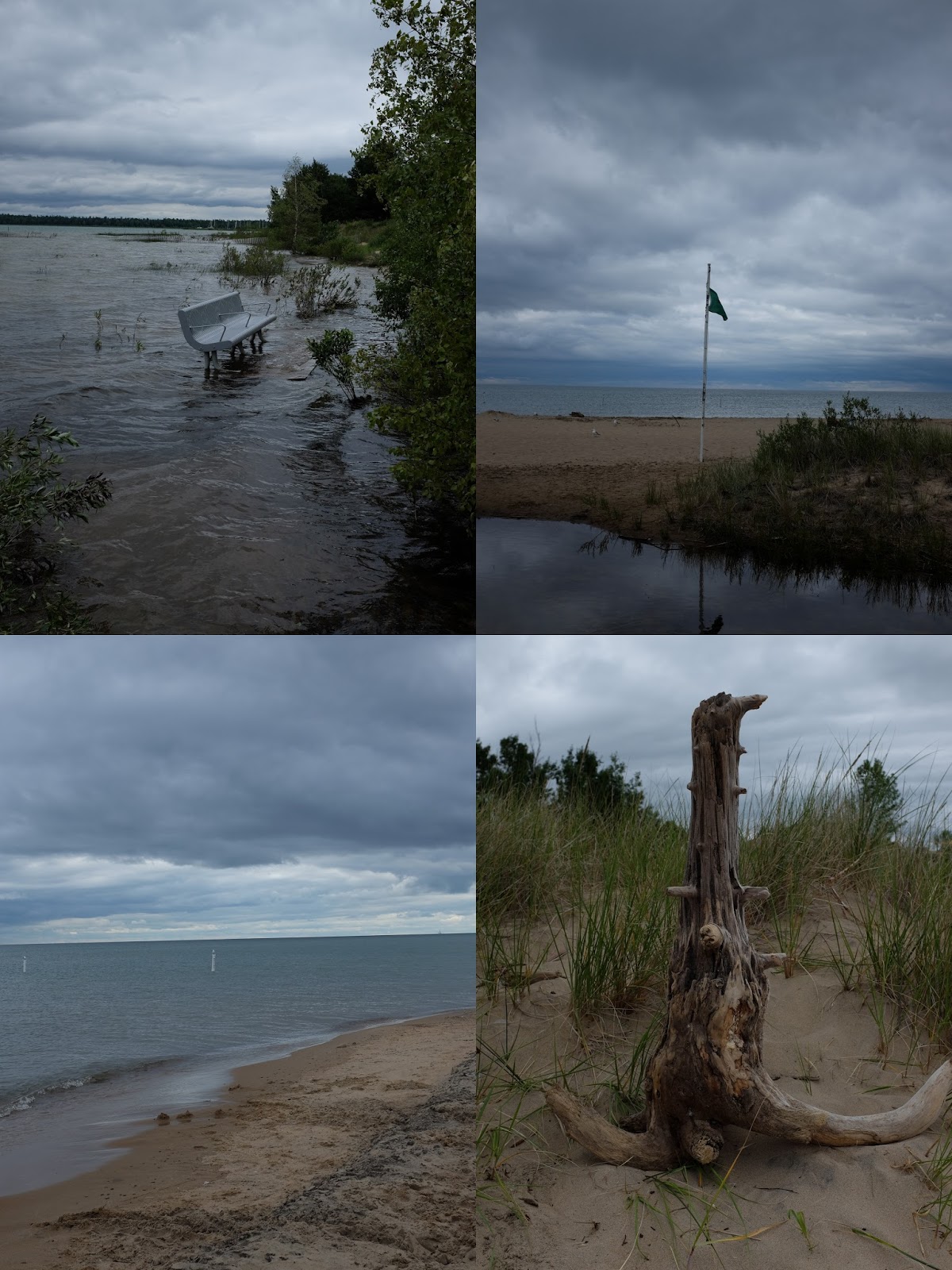 The state park was pretty amazing in its own right. While we waited for the lighthouse tour to begin, we wandered around some of the trails and beaches. Tawas Point itself is constantly changing so many of the beaches are currently underwater while others are getting larger. Mom and I were particularly amused by the "pet-friendly beach" that was entirely underwater (see the bench in the collage below).