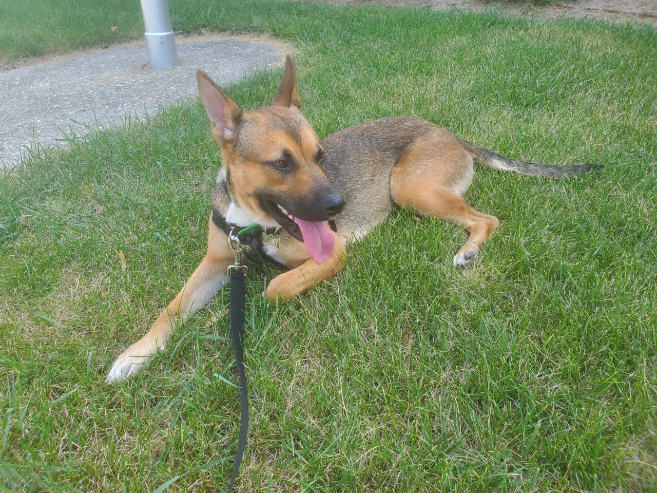 This is what I'm dealing with. Isn't she cute? Look at those ears! That happy smile. That tongue that says "I'm so exhausted and hot and why can't we be home already?"!